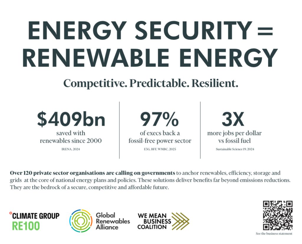The private sector’s message is clear: energy security can only be achieved with competitive, predictable and resilient renewables.